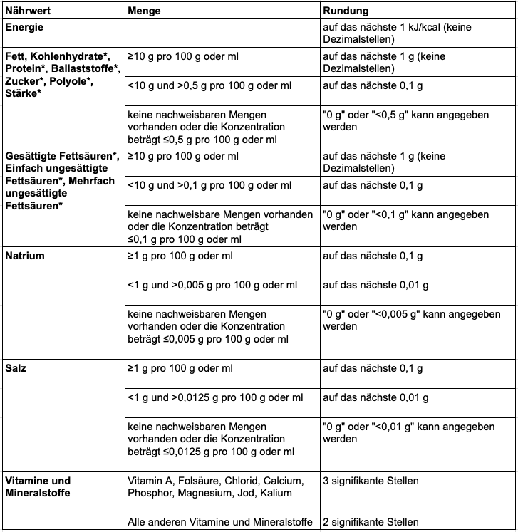 e-label – Editor – Produktinformationen – Nährwerttabelle – Rundungsregeln - Enterprise https://food.ec.europa.eu/system/files/2016-10/labelling_nutrition-vitamins_minerals-guidance_tolerances_1212_en.pdf Tabelle 4 (Seite 15)(mit KI übersetzt) Haben Sie Fragen? Anfrage einreichen Kommentare