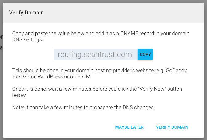 Hinzufügen Ihrer benutzerdefinierten Domäne zum Scantrust-Portal