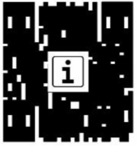Wenn Sie die Information „i“ in einen QR-Code einfügen möchten, können Sie diese Datei in einer separaten und zusätzlichen Ebene hinzufügen und dabei darauf achten, dass der Code lesbar bleibt. Das "i“ sieht so aus: