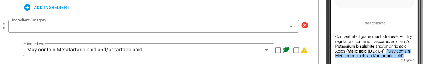 After you added all your ingredients, add an extra category: leave it empty:
