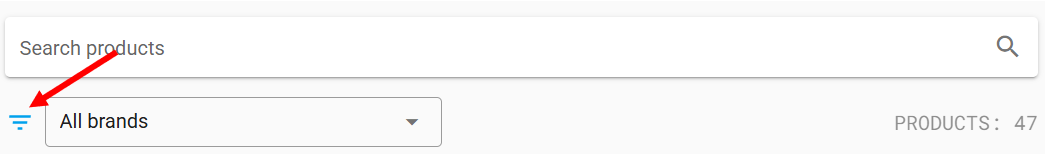 Note. You can search products by name, SKU, and filter the list by selecting the brand to which the product belongs, as follows: