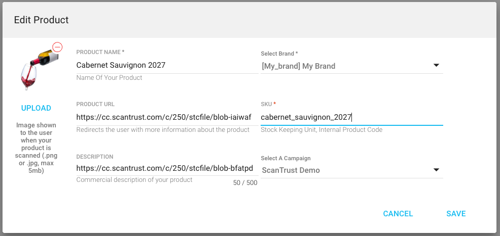 Esta página de destino mostrará las 2 imágenes cuando se escanee el producto.