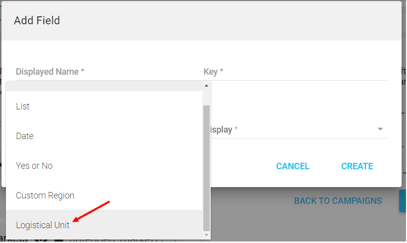 - Field Type*: Elige Unidad logística en el menú desplegable