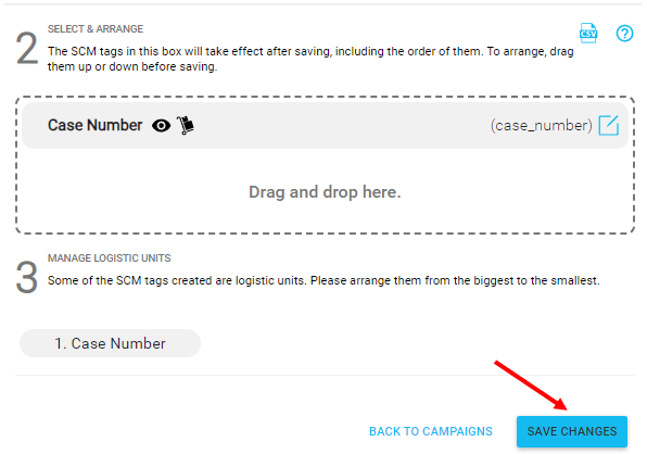 6. Para configurar una unidad logística es similar a configurar un campo SCM, asumimos que ya haz leído ese artículo, si no, por favor dale una mirada: Configuración de Campos SCM en una Campaña . Por ejemplo, para poder asociar 4 elementos a una caja, debes agregar un "parámetro SCM de la unidad logística".
