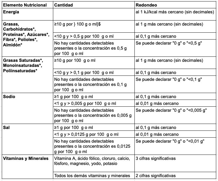 e-label - Editor - Información del producto - Tabla nutricional - Reglas de redondeo https://food.ec.europa.eu/system/files/2016-10/labelling_nutrition-vitamins_minerals-guidance_tolerances_1212_en.pdf Tabla 4 (página 15)(traducido con IA) ¿Tiene más preguntas? Enviar una solicitud Comentarios