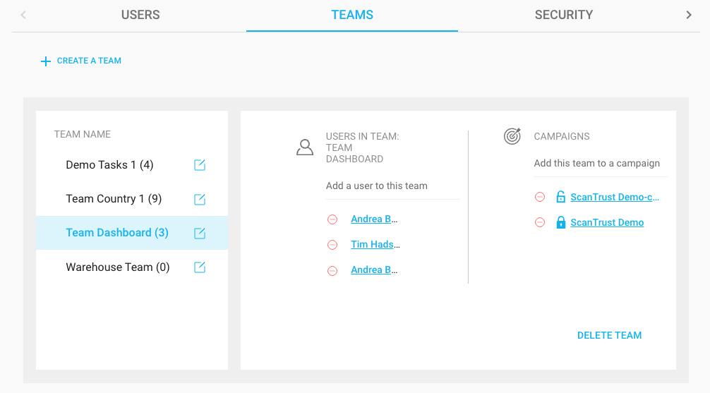 La gestión de equipos forma parte de la función de gestión de usuarios de Scantrust. A continuación, explicaremos en detalle cómo crear y gestionar equipos en nuestra plataforma: