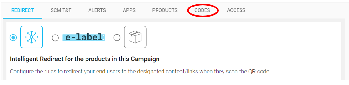 6. Luego, seleccione la pestaña CÓDIGOS:
