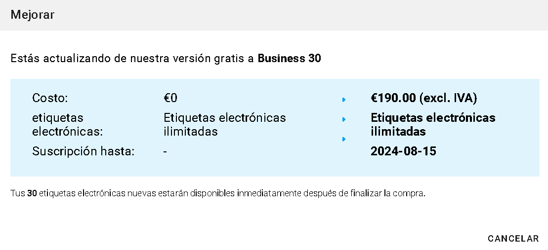 - Mejorar el plan solo funciona si es a un paquete superior. Actualmente no es posible comprar el mismo paquete más de una vez.
