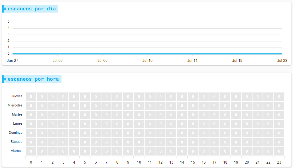 ESCANEO POR HORA: visualización de escaneos por día de la semana y hora del día (el ejemplo anterior muestra que la mayoría de los escaneos en las últimas 4 semanas ocurrieron los jueves por la tarde)