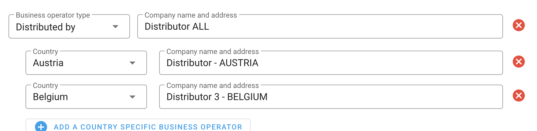 Cette section de l'outil de gestion des labels électroniques vous permet d'inclure le nom de l'entreprise et l'adresse des opérateurs commerciaux. Vous pouvez sélectionner le type d'entreprise dans la liste déroulante, puis ajouter le nom :