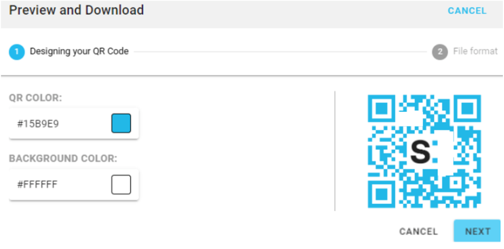 - La fenêtre d'édition apparaîtra et vous pourrez modifier les couleurs du QR et de l'arrière-plan, notamment en ajoutant un logo au code :