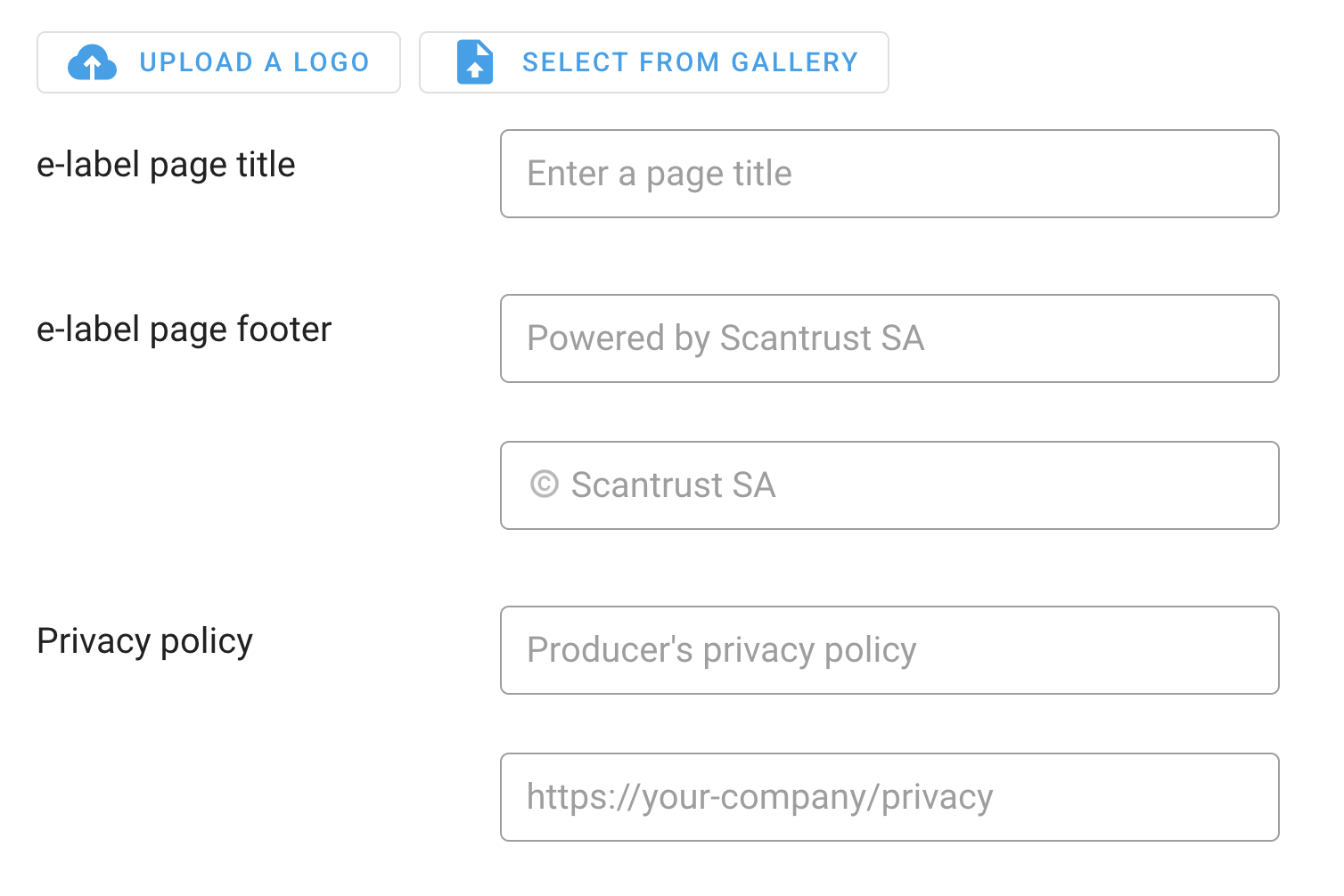 Ici, vous pouvez choisir de modifier ou non le logo de l'étiquette électronique et vous pouvez fournir le titre et le pied de page de la page :