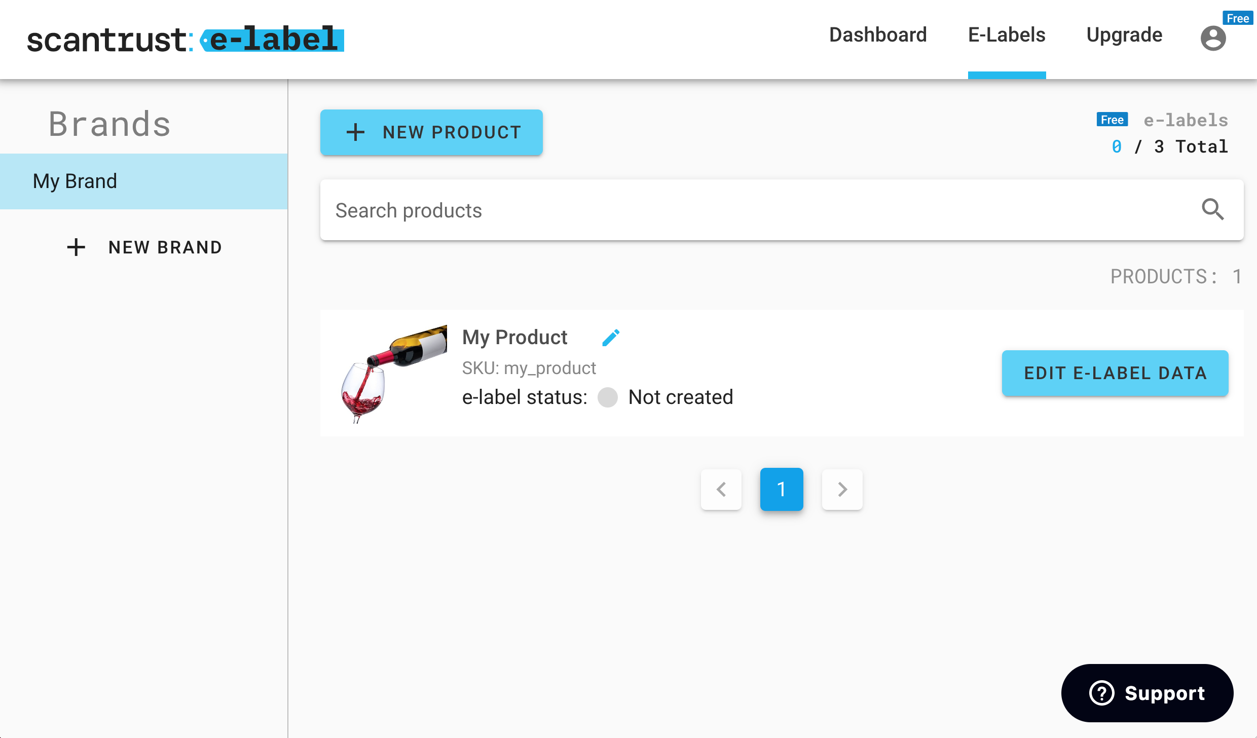 7. Cliquez sur MODIFIER LES DONNÉES DE L'ÉTIQUETTE pour commencer à remplir les informations de l'étiquette électronique et à associer votre code pour ce produit :