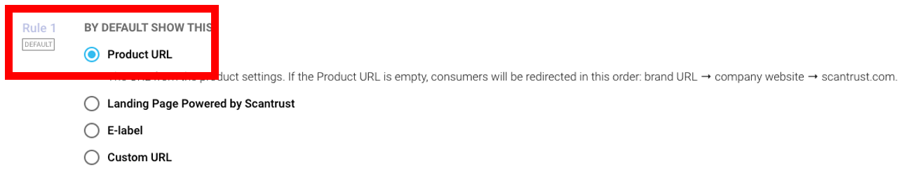 Si vous souhaitez rediriger vers l'URL du produit plutôt que vers une page de destination, dans la règle 1, sélectionnez « URL du produit ».