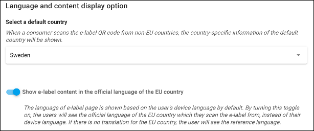 • "Mostra il contenuto dell'etichetta elettronica nella lingua ufficiale dell'UE del paese"