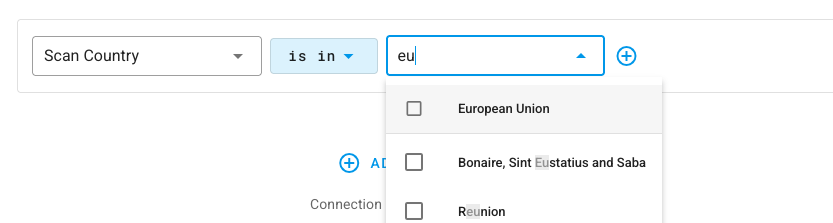 Per semplificare l'aggiunta dei paesi europei, digita "European Union" nel campo Paese: tutti i paesi dell'UE verranno compilati automaticamente.