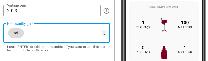 1. Il logo della bottiglia NON appare se la QUANTITÀ NETTA è inferiore a 1 ml: