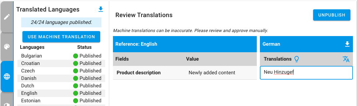 È importante ricordare che se aggiungi contenuti dopo aver precedentemente tradotto le tue etichette elettroniche, devi avviare nuovamente le traduzioni, per questo abbiamo 2 opzioni