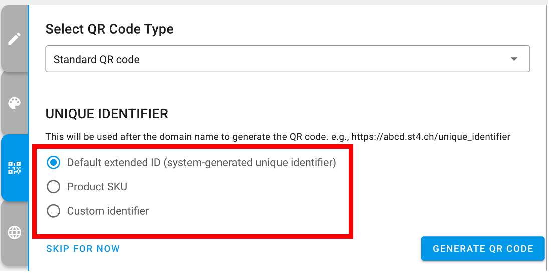 Opzione 3 - consente di creare un ID univoco personalizzato (tra 8 e 36 caratteri alfanumerici, trattini bassi (_) e trattini (-))