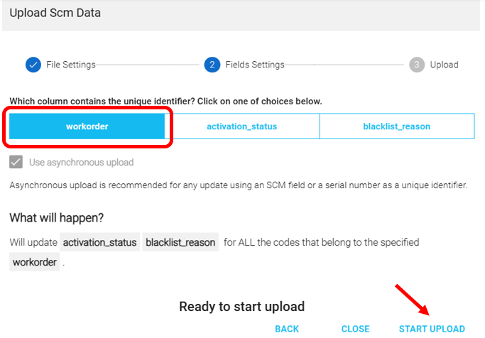 11. Successivamente, fare clic sulla prima colonna: "Workorder" e quindi fare clic su AVVIA CARICAMENTO: