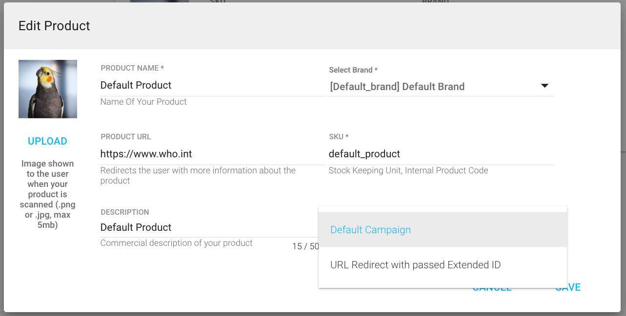 7. Ogni campo può essere modificato. Solo lo SKU deve essere unico nella tua azienda. Sono tutti campi di testo libero, tranne Brand e Campagna, per questi due scegli dalla selezione esistente tramite il menu a discesa: