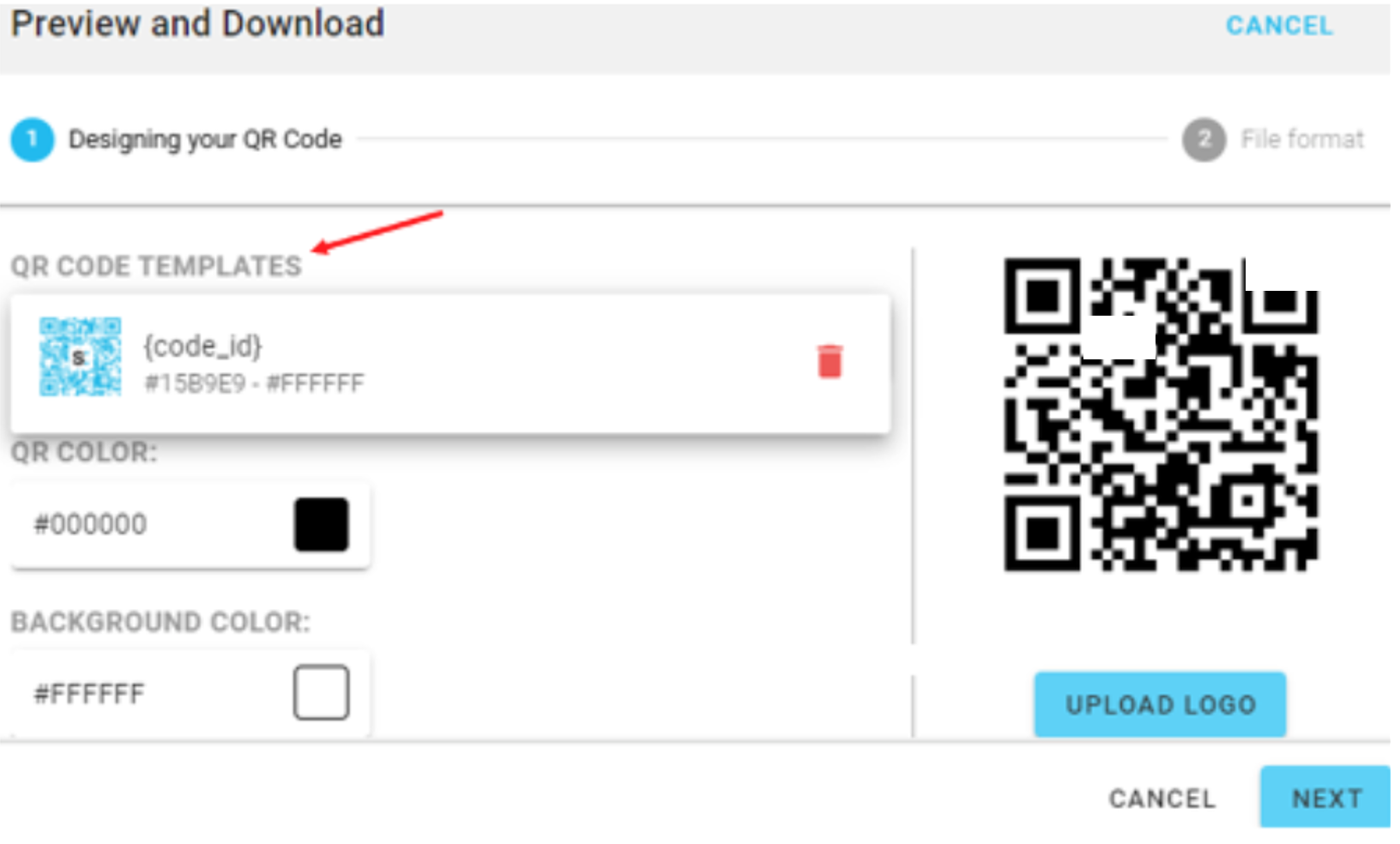 Apparirà la finestra di modifica e potrai modificare i colori del QR e dello sfondo, inclusa l'aggiunta di un logo al codice: