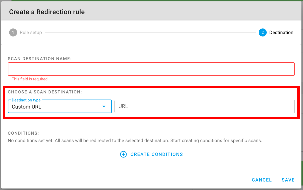 3. Dê um nome significativo e especifique URL PERSONALIZADA como o tipo de destino: