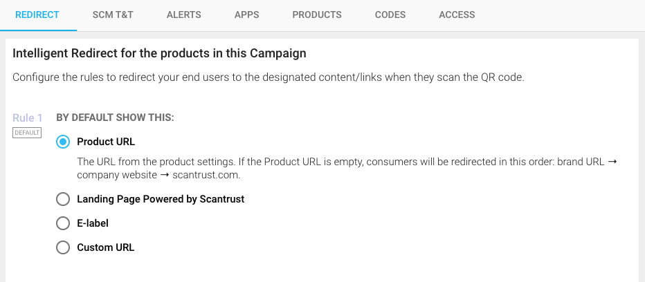 Nas definições da campanha, se o redirecionamento estiver definido para o rótulo eletrónico predefinido, caso o rótulo eletrónico não seja publicado, redirecionará automaticamente para o URL do produto.
