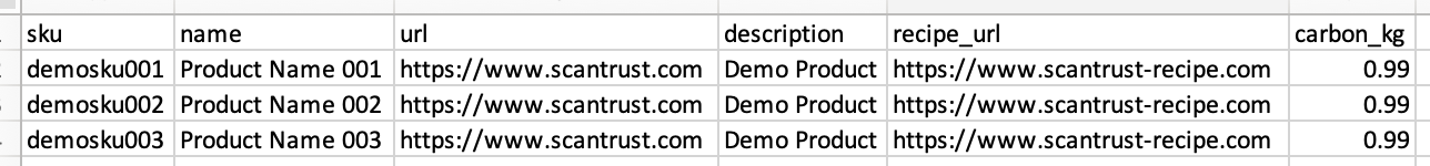 Para criar vários produtos e gerar códigos QR simultaneamente, recomendamos usar um único arquivo CSV para evitar erros. Este arquivo contém as informações do produto e as tags SCM configuradas para a campanha.