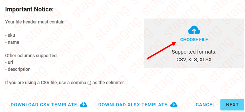 Prepare seu arquivo CSV com as informações corretas do produto. Consulte o modelo em anexo para referência.