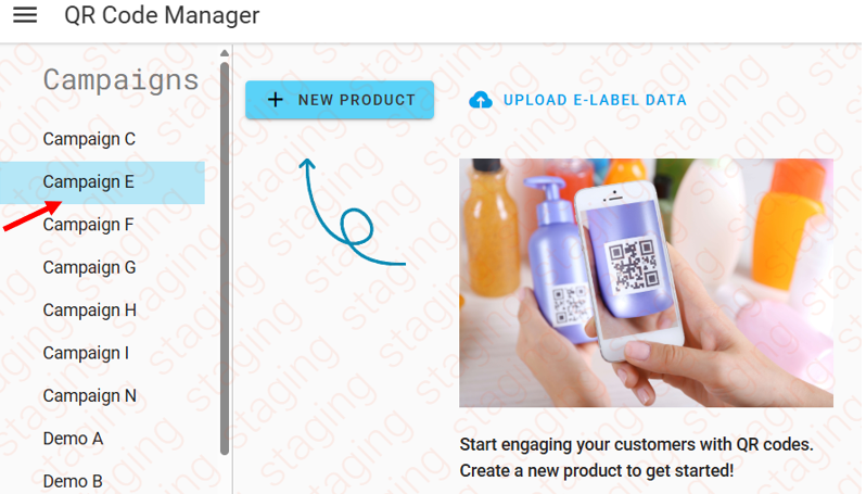 3. Na página Gerenciador de QR, em Campanhas, selecione a campanha correta à qual deseja adicionar produtos.