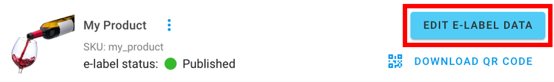 1. Vá em “EDITAR DADOS DO E-LABEL” do seu NOVO produto (aquele que não possui nenhum dado do rótulo eletrônico):
