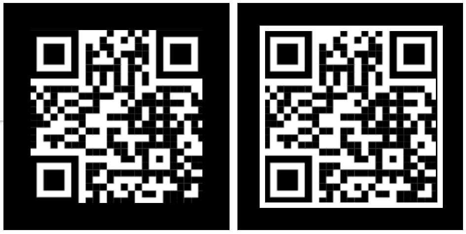 2. 靜區 - 二維碼結束與其他圖案開始的區域。建議在每個二維碼周圍留出一毫米的靜區: