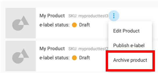 1. 如果尚未關聯任何程式碼,則可以刪除產品,方法是按一下 3 點選項,然後按一下「存檔產品」選項,如下所示: