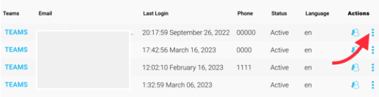 在“Users & Teams”用户与团队页面,将显示公司添加的所有成员,点击每行最右侧“操作”按钮,您可: