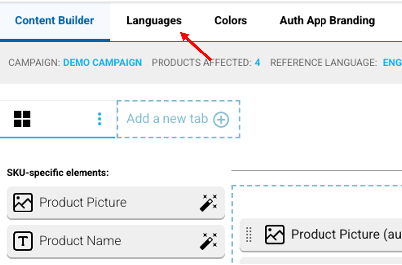 4. 在页面顶部,您可以看到活动名称、活动中包含的产品数量以及此落地页的参考语言。