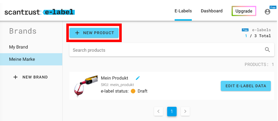 電子標籤入口網站 - 品牌和產品管理 - 新增產品 以下是為電子標籤新增產品的步驟:1.選擇正確的品牌:2. 然後,點擊新產品 按鈕:3. 在彈出視窗中,請填寫所需信息,並上傳圖片(如有需要)。此外,請選擇正確的品牌: 还有其它问题?提交请求 评论